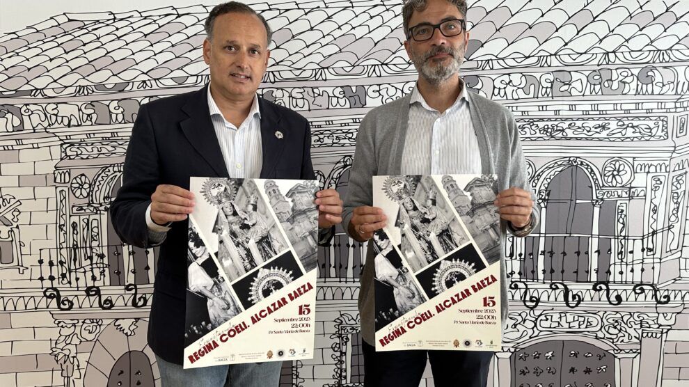 Ignacio A. Montoro, concejal de Cultura, junto a Manuel Rascón, Hermano Mayor de la Real Archicofradía de Santa María del Alcázar y San Andrés Apóstol, Patronos de Baeza, han presentado el espectáculo musical ‘Regina Coeli. Alcázar Baeza’ que tendrá lugar el próximo 15 de septiembre a las 22:00 horas en la Plaza de Santa María.