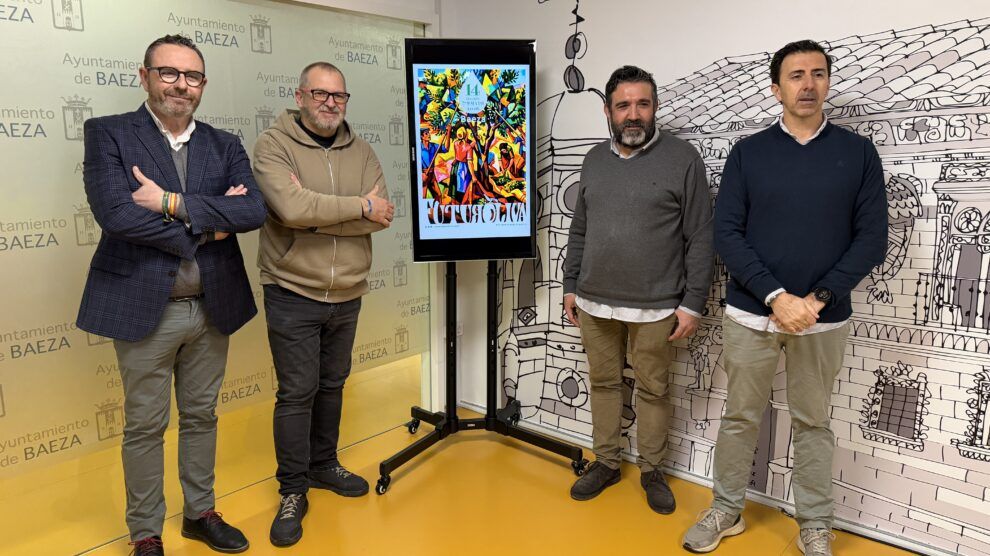 En el Ayuntamiento de Baeza, ha tenido lugar la presentación del cartel de la Feria que ha contado con la presencia de Sebastián Moreno y Santiago Calvo, responsables de la organización de Futuroliva y propietarios de Pópulo Servicios Turísticos. Así mismo, han asistido Antonio Sánchez Ruiz, de Artifactum, autor del cartel y el concejal de Agricultura del Ayuntamiento de Baeza, Antonio Perales.